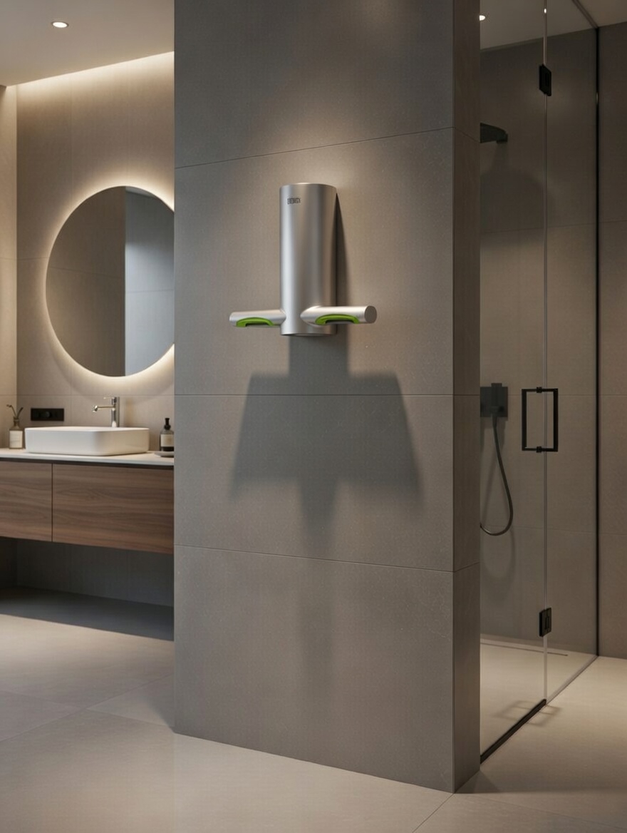 Сушилка изготовлена из высококачественных материалов, которые полностью безопасны и не токсичны. Не высокий уровень потребляемой мощности + EAS система + высокая скорость сушки рук — все это значительно экономит электроэнергию.